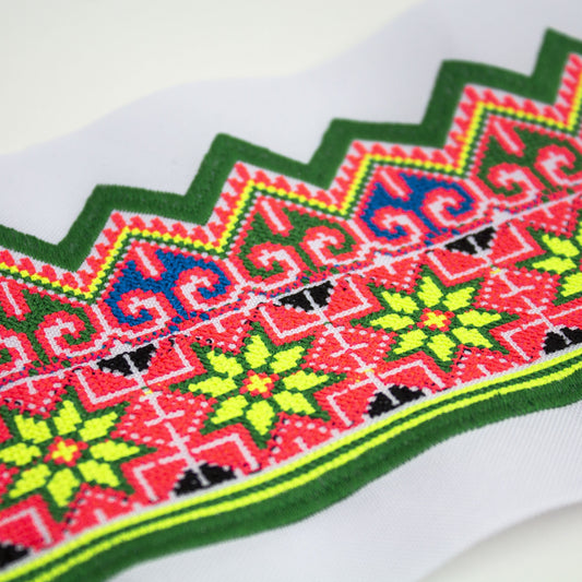 Paaj Ntaub - B2 Green & Red Half Elephant Foot (White)