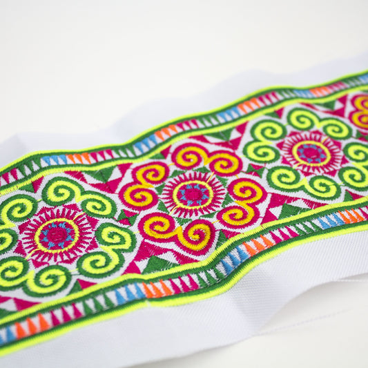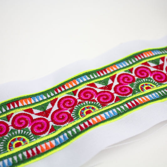 Paaj Ntaub - B2 Green & Red Elephant Foot (White)